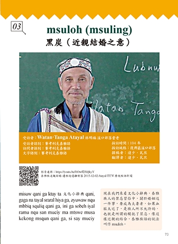 受訪者語別:賽考利克泰雅語 採訪時間:104 年