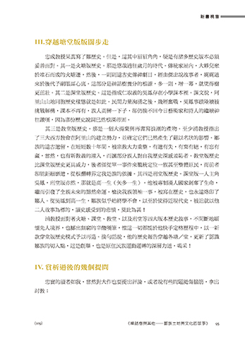 款穿堂版歷史模式予以再造。換句話說,他的歷史報告穿越各塘/堂,更新了認識