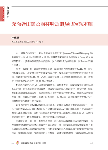 中遇到了一位 Jah Hut 族雕刻師。Jah Hut 族屬於馬來西亞半島原住民(Orang Asli)19