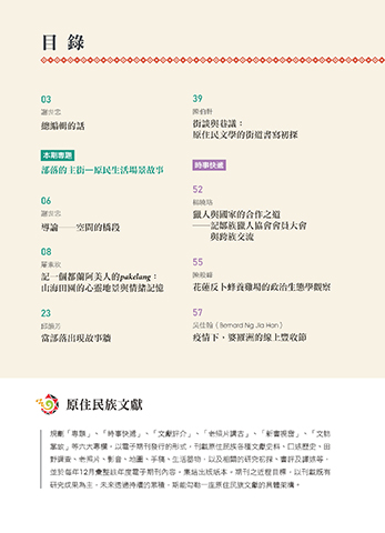 掌故」等六大專欄,以電子期刊發行的形式,刊載原住民族各種文獻史料、口述歷史、田