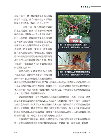 雖 然 心 裡 對 於 蜻 蜓 是 否 為 合 適 的 圖2 嘎色鬧族人製作蜻蜓意象的過程