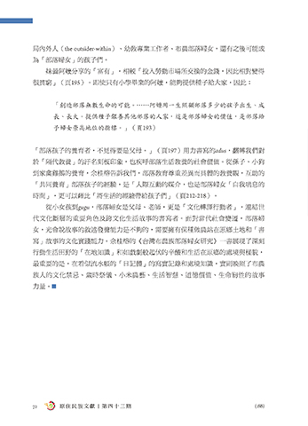 寫」故事的文化實踐能力。余桂榕的《台灣布農族部落婦女研究》一書展現了深刻