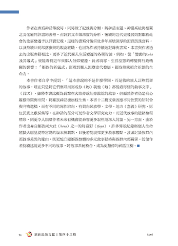 會的重要變遷予以詳實記載,這樣的書寫背後仰仗多年累積深厚的田野訪談資料,