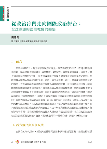球原住民族運動的興起、發展、策略和影響作一簡略介紹、回顧、分析和討論。