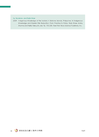 2009 Indigenous Knowledge of the Ivatans in Batanes Islands, Philippines. In Indigenous