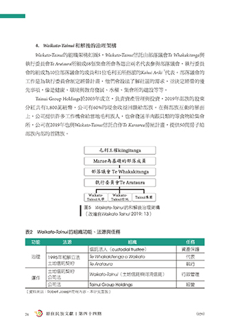 表2 Waikato-Tainui 的組織功能、法源與任務