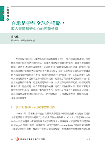 律賓進行田野參訪、嘗試進行教學研究合作,到政治大學成立「臺菲原住民知識、