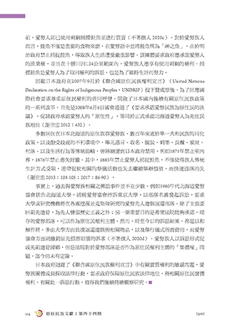際社會要求尊重原住民權利的普同呼聲,開啟了日本國內後續有關原住民族政策