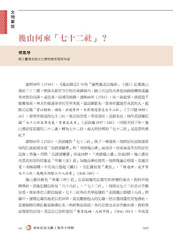 後山何來「七十二社」?