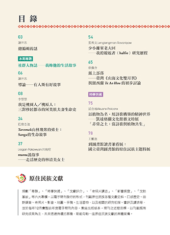 掌故」等六大專欄,以電子期刊發行的形式,刊載原住民族各種文獻史料、口述歷史、田