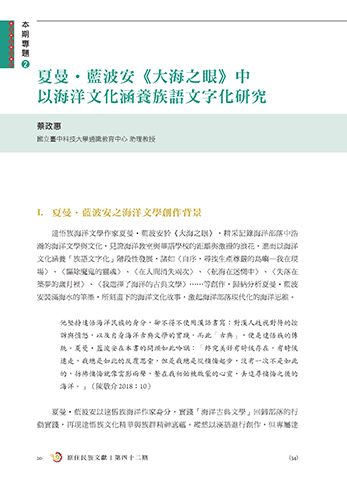 築夢的歲月裡〉、〈我選擇了海洋的古典文學〉……等創作,歸納分析夏曼•藍波