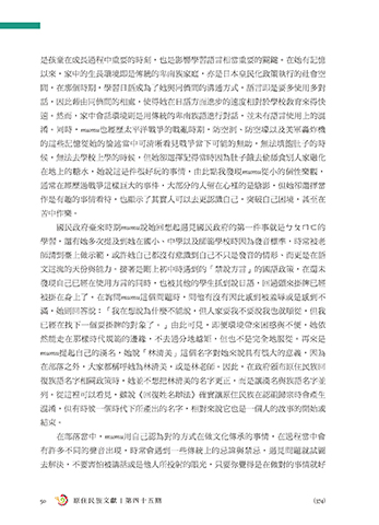文這塊的天份與能力。接著是剛上初中時遇到的「禁說方言」的國語政策,在還未