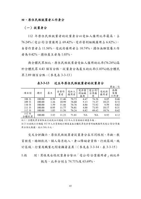 112 年原住民族就業者的從業身分以受私人僱用比率最高,占