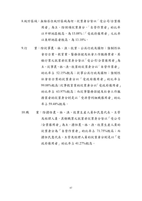 以中部地區較高,為 15.08%;「受政府僱用者」之比率