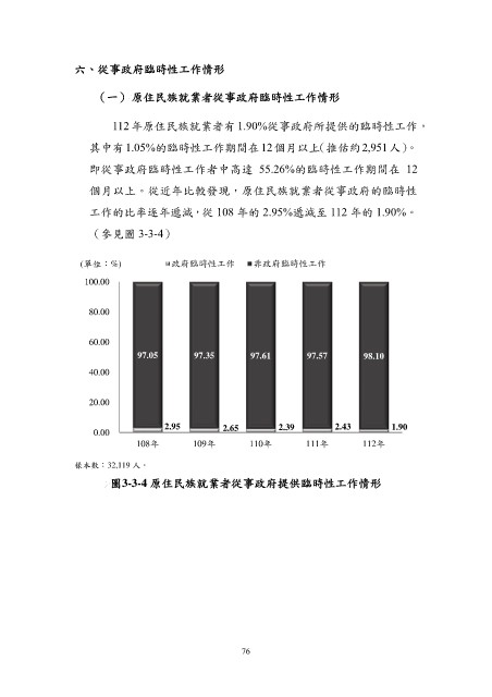 個月以上。從近年比較發現,原住民族就業者從事政府的臨時性