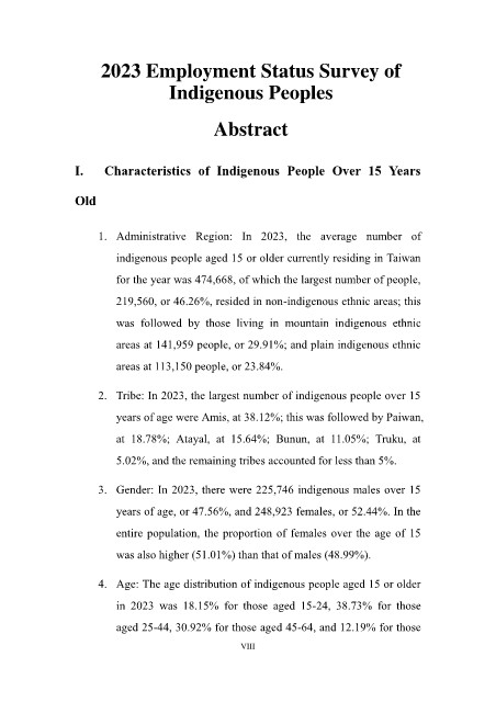 indigenous people aged 15 or older currently residing in Taiwan