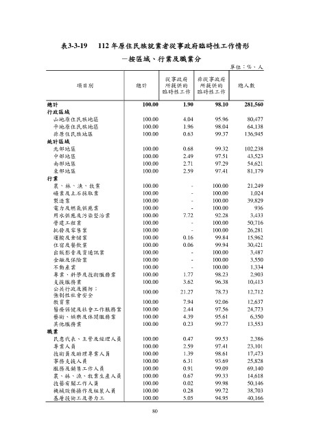 表3-3-19 112 年原住民族就業者從事政府臨時性工作情形