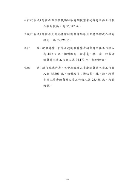6.行政區域:居住在非原住民族地區有酬就業者的每月主要工作收