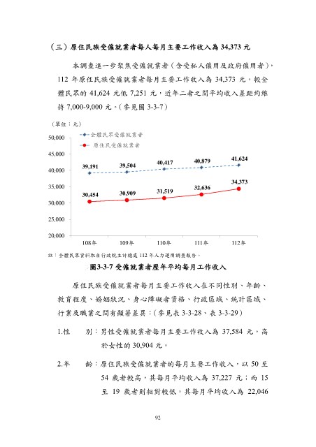 (三)原住民族受僱就業者每人每月主要工作收入為 34,373 元