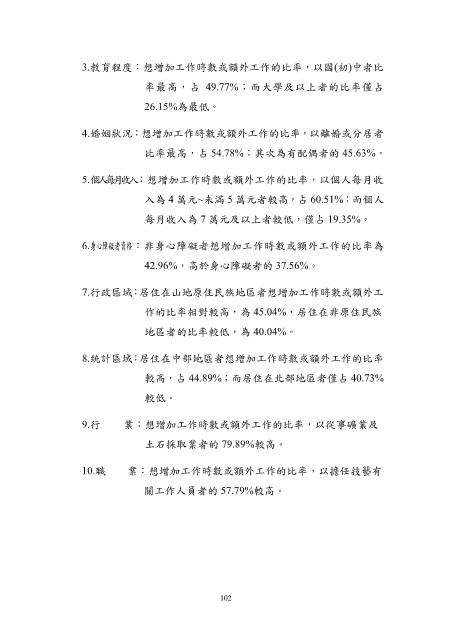 10.職 業:想增加工作時數或額外工作的比率,以擔任技藝有