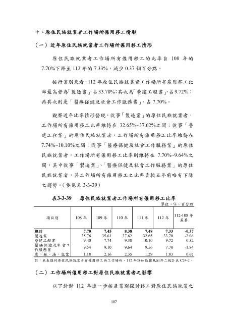 註:本表僅列原住民族就業者有僱用移工的工作場所,112 年詳細數據見附件二統計表 C24-2。