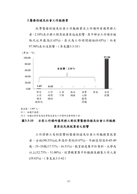 者 , 2.10%表示移工對其就業有造成影響,其中部分工作項目被