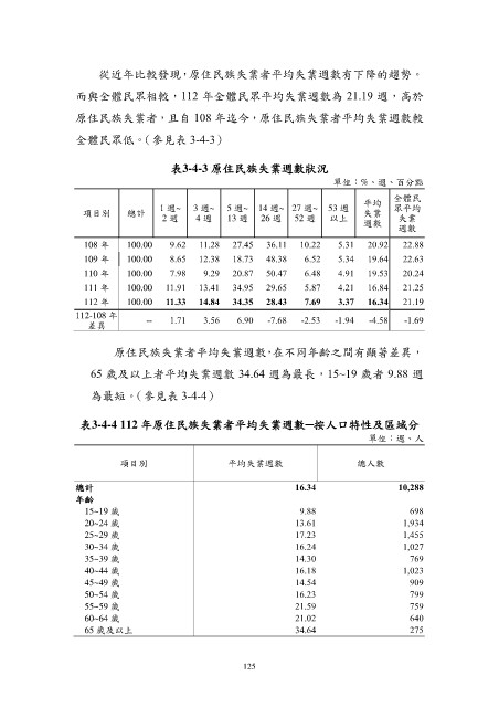 表3-4-4 112 年原住民族失業者平均失業週數─按人口特性及區域分