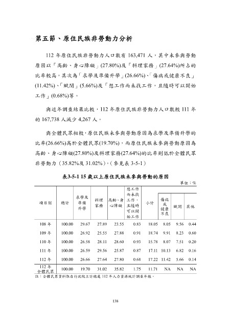非勞動力(35.82%及 31.02%)。(參見表 3-5-1)
