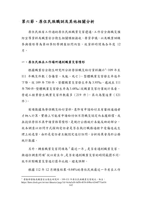 3 勞動部勞動及職業安全衛生研究所,109-111 年原住民族職業災害現況,取自: