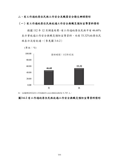 表示曾收過工作安全與職災預防宣導資料,而有 53.32%的原住民