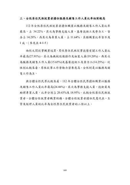 助理專業人員,比率分別占 20.43%及 18.95%。比較女性原住民族就