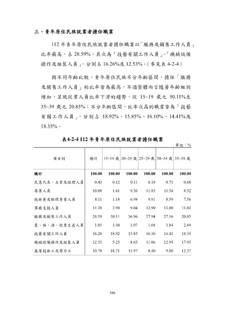 表4-2-4 112 年青年原住民族就業者擔任職業