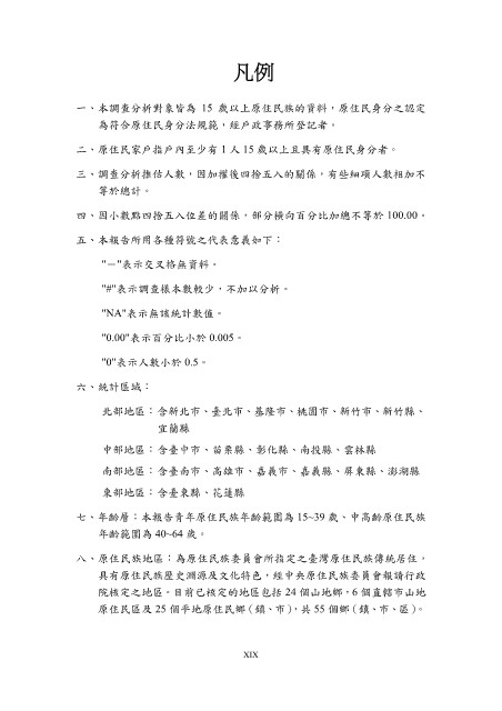七、年齡層:本報告青年原住民族年齡範圍為 15~39 歲、中高齡原住民族