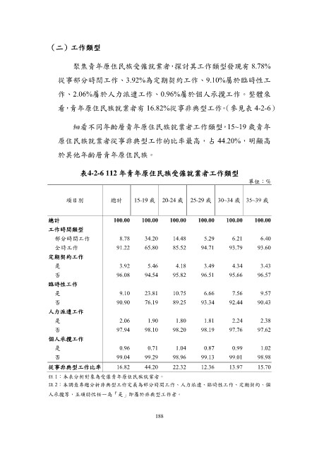看,青年原住民族就業者有 16.82%從事非典型工作。(參見表 4-2-6)