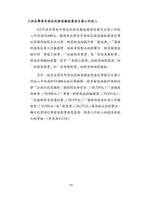 另外,從非在學青年原住民族受僱就業者從事每月主要工