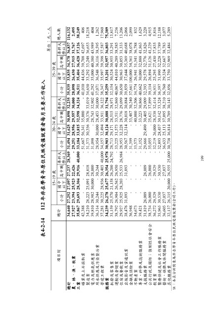 表4-2-14 112 年非在學青年原住民族受僱就業者每月主要工作收入