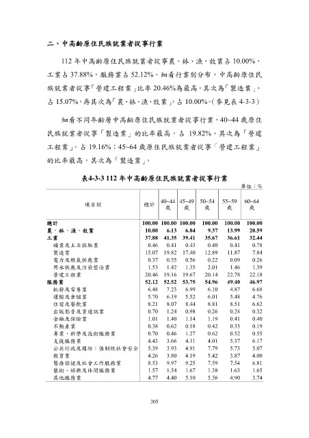 表4-3-3 112 年中高齡原住民族就業者從事行業