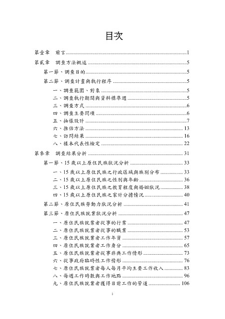 九、原住民族就業者獲得目前工作的管道 ........................ 106