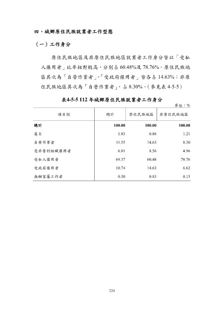 人僱用者」比率相對較高,分別占 60.48%及 78.76%。原住民族地