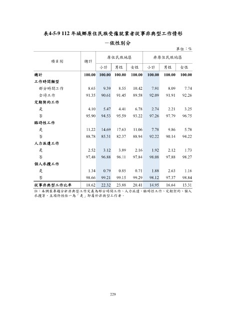 表4-5-9 112 年城鄉原住民族受僱就業者從事非典型工作情形