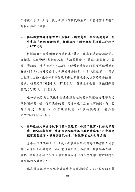 首先,在學青年原住民族受僱就業者從事住宿及餐飲業、擔任服務及