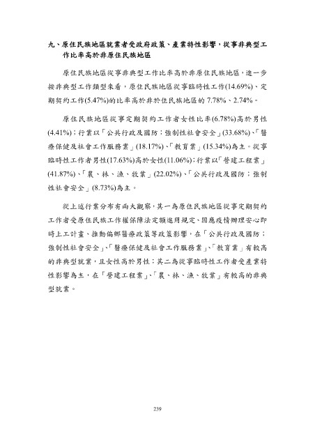 九、原住民族地區就業者受政府政策、產業特性影響,從事非典型工