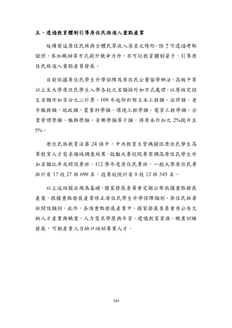 等教育人才需求領域調查結果,鼓勵大專校院專案調高原住民學生外