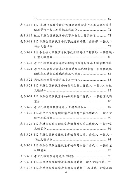 表 3-3-25 原住民族有酬就業者每月主要工作收入 .......................... 87