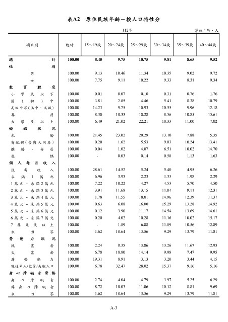 項目別 總計 15~19歲 20~24歲 25~29歲 30~34歲 35~39歲 40~44歲