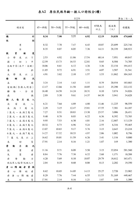 非 勞 動 力 4.20 5.69 8.10 10.07 29.79 18,612 163,471
