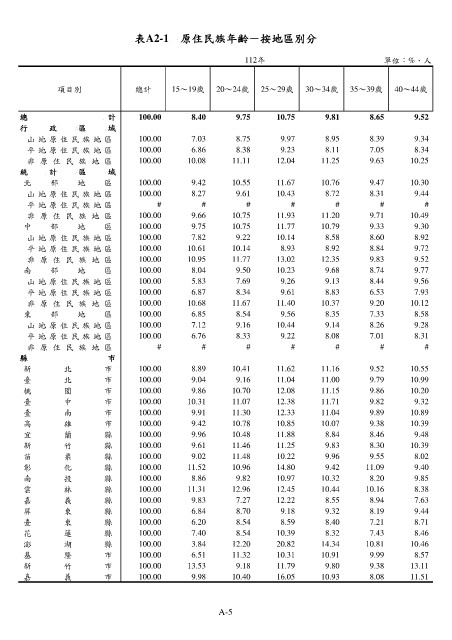 山 地 原 住 民 族 地 區 100.00 7.03 8.75 9.97 8.95 8.39 9.34