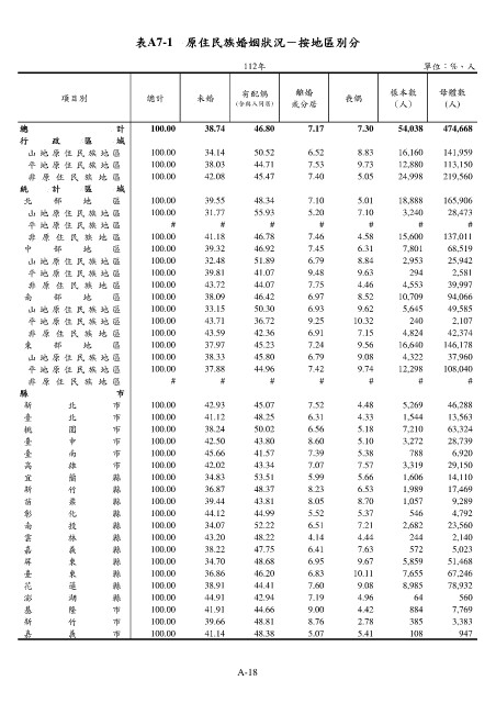 平 地 原 住 民 族 地 區 100.00 38.03 44.71 7.53 9.73 12,880 113,150