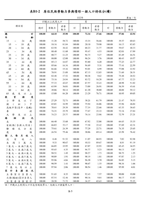 表B1-2 原住民族勞動力參與情形-按人口特性分(續)