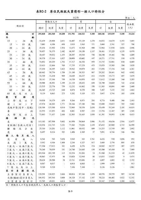 表B2-2 原住民族就失業情形-按人口特性分